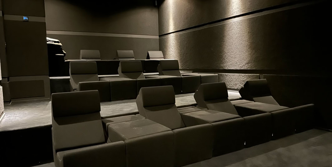 Un cinéma de 20 place (4 places supplémentaires possibles) offrant un son professionnel, un écran de 5m de largeur et un projecteur 4k. Une sélection de films, mais également une connectivité large en font un lieu multi-usages.