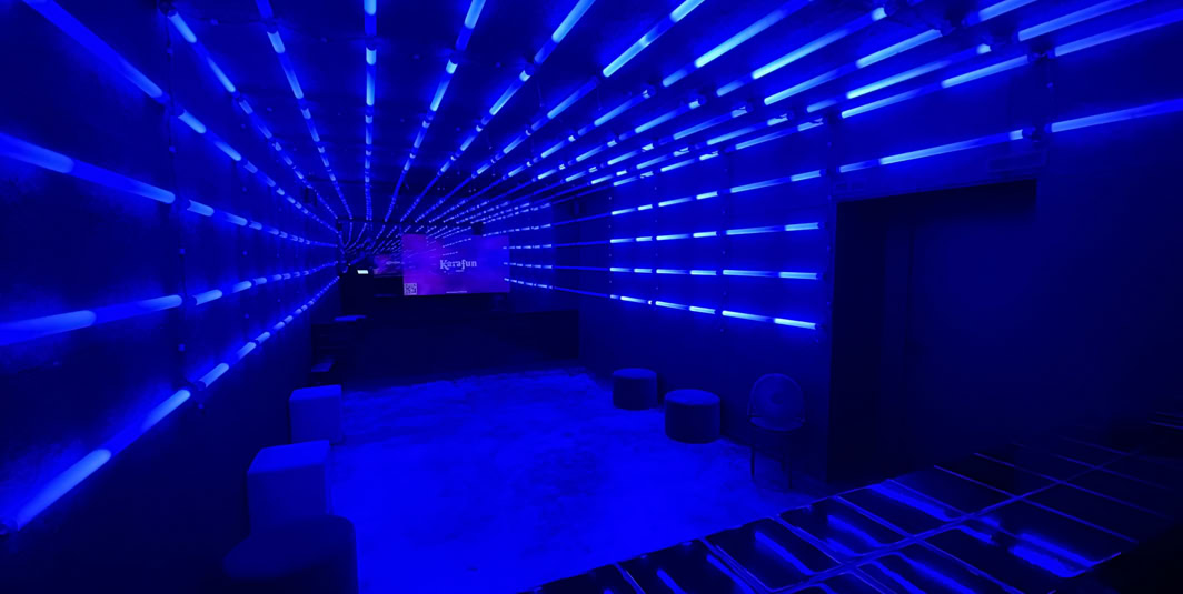 Dans une salle cachée, un espace "boite de nuit" / Karaoké, équipé d'écran (derrière un miroir sans tain), de micros et d'une sono professionnels permet un moment de détente en équipe.