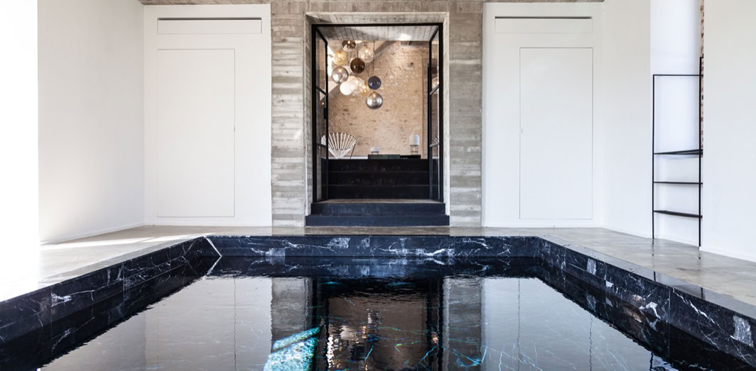 Otherside offre 2 piscines, une intérieure ouverte toute l'année, avec nage à contrecourant et une piscine extérieure ouverte en saison estivale, toutes les deux en marbre noir etchauffées