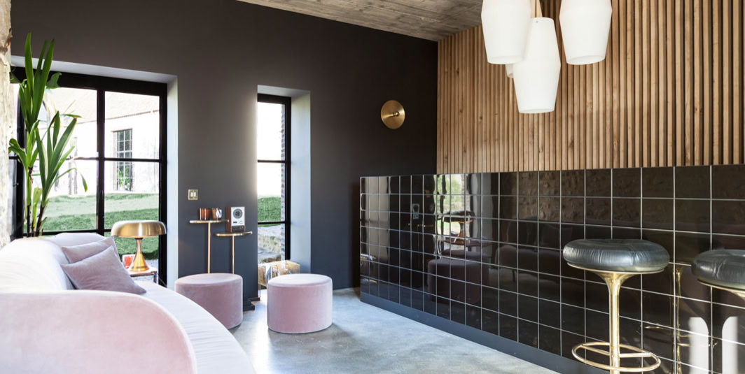 Répartie en 3 bâtisses, la somptueuse décoration mélange oeuvres artistiques insolites et pièces design des années 50 à 80. Chacune des bâtisses a été rénovée avec soin dans le respect de l’architecture d’origine pour créer une ambiance chaleureuse tout en étant design et raffiné. De grandes baies vitrées, de nombreuses terrasses, des équipements nombreux et inédits pour un tel lieu en font un endroit à la fois surprenant et insolite. Une piscine intérieure chauffée avec nage à contrecourant, une piscine extérieure chauffée aux beaux jours, toutes les deux ouvragées en marbre noir, mais également un sauna, un hammam, des écuries et des espaces dédiés à l'équitation mais également à l'équicoaching, cette demeure ancienne, offrant tout le confort moderne, peut accueillir jusqu’à 30 personnes dans 15 chambres.